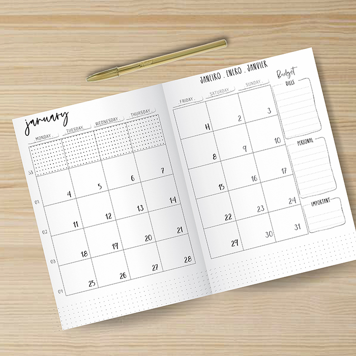 - Vista semanal (uma semana em duas páginas)