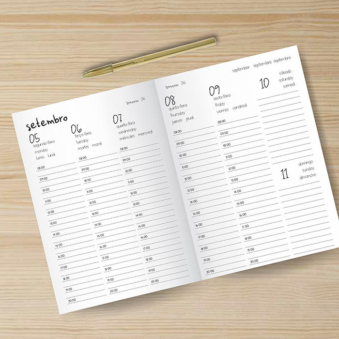 Agenda Semanal 2023, tamanho A5 e Caneta