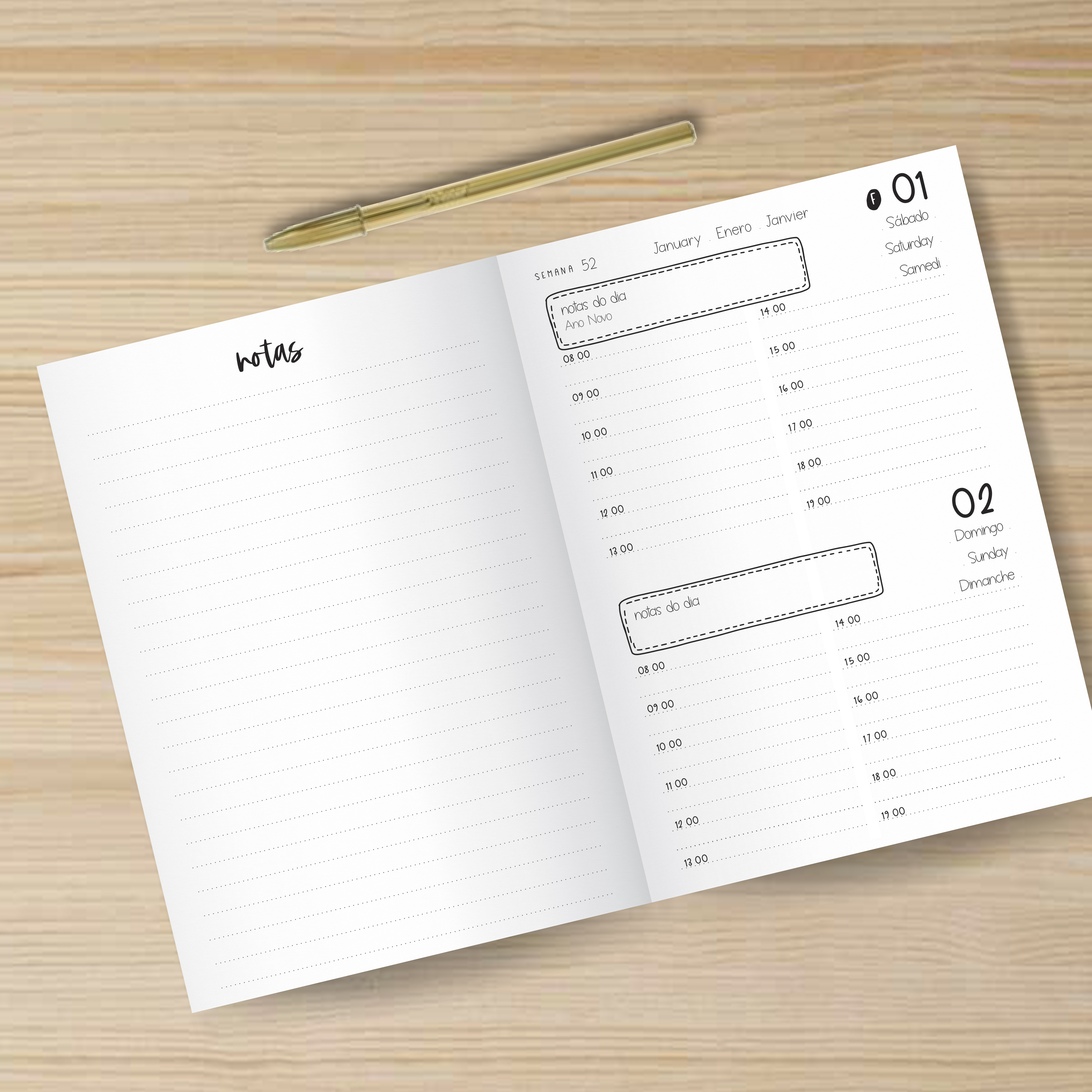 Agenda Diária 2022, tamanho A6, capa dura, com argolas