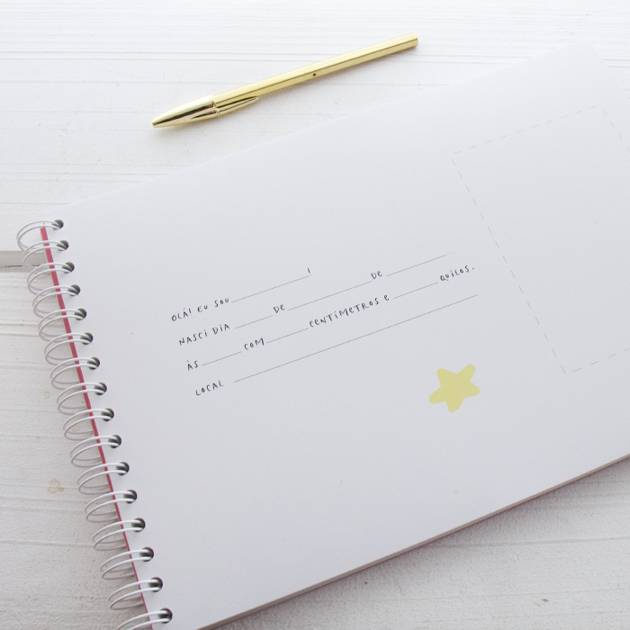 Pode colar fotos, escrever, anotar tudo que o bebé faz desde que nasceu até à sua 1a festa de anos!