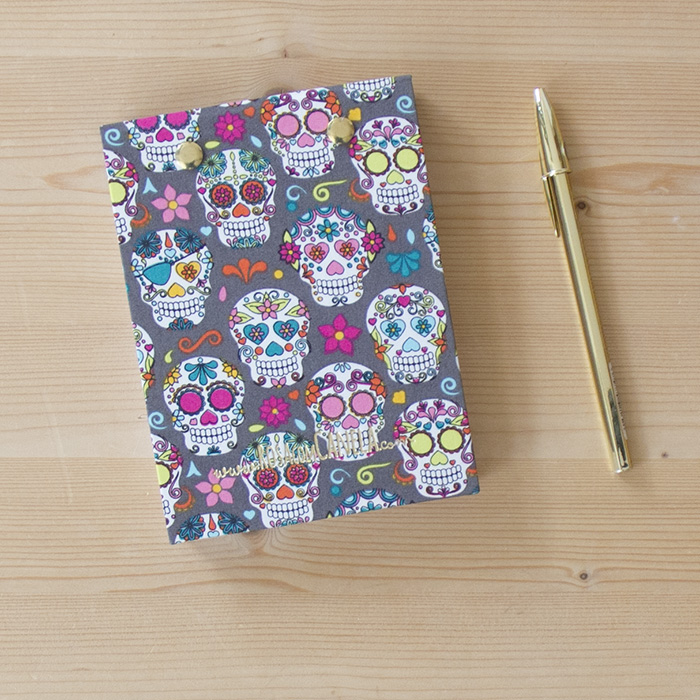 Folhas perfuradas com dois rebites dourados.