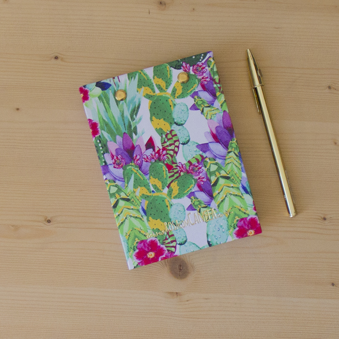 Folhas perfuradas com dois rebites dourados.