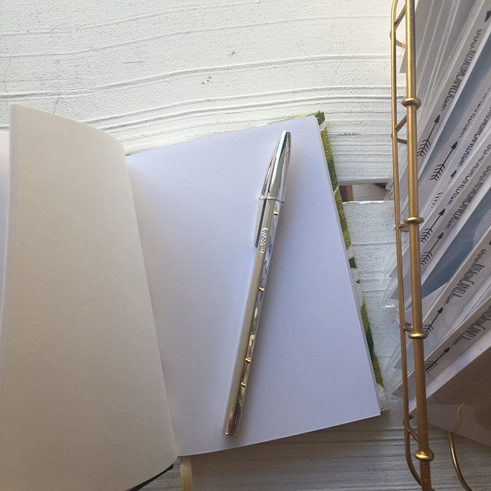 Caderno em tecido, miolo liso, 100 folhas.