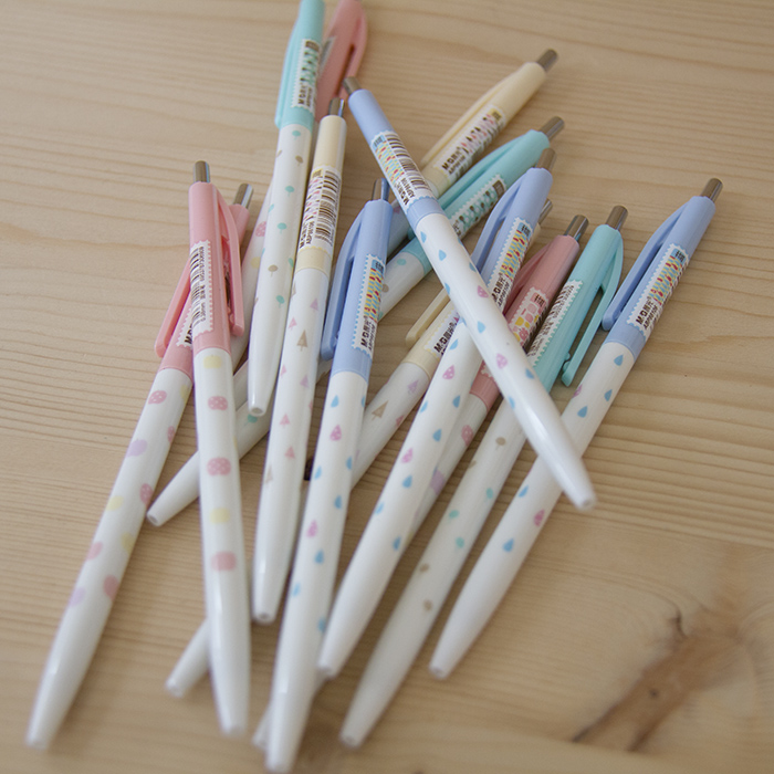 Caneta linda em cor pastel, escreve com tinta azul.