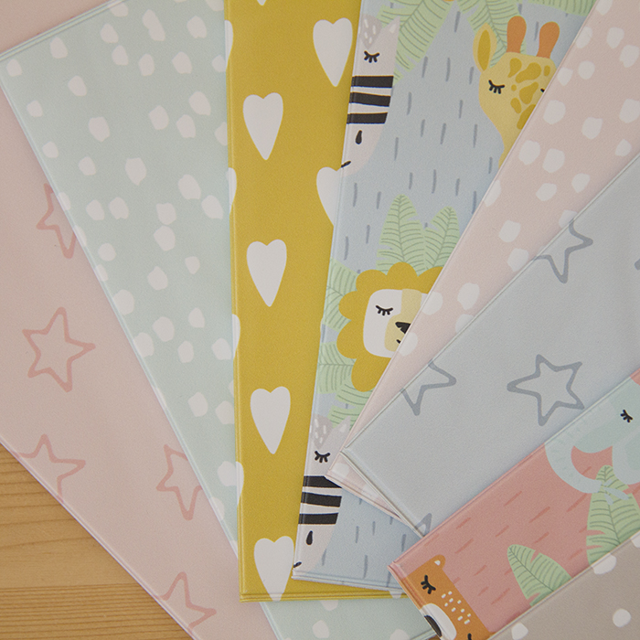 Plástico semi rígido e resistente, com 2 compartimentos no interior para inserir o boletim.