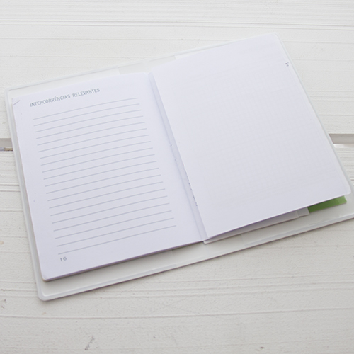 Plástico semi rígido e resistente, com 2 compartimentos no interior para inserir o boletim.