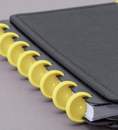 Discos e elástico amarelo cerrado para o Caderno Inteligente