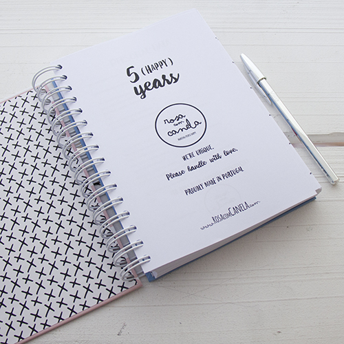 Cada página tem 5 espaços, onde pode preencher o dia e o ano a que se refere.