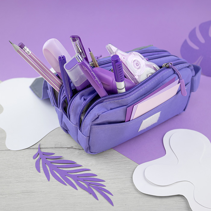 Estojo tecido 3 bolsos Fechado Lilás (SP)