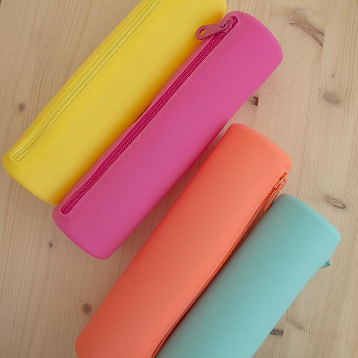 Este estojo em silicone com toque macio e cores fluorescentes é lindo para usar nas aulas, ou mesmo na carteira com as canetas todas!