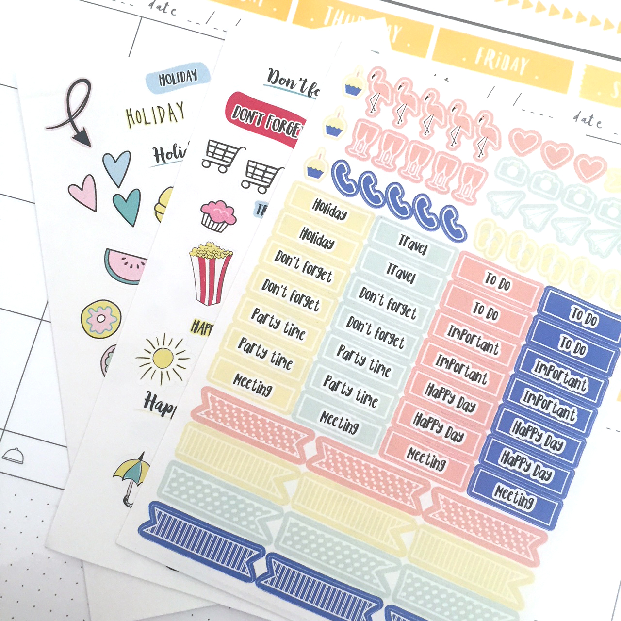 Conjunto de 3 folhas de stickers (3 desenhos)
