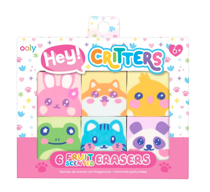 Caixinha com 6 borrachas com aroma a frutas com caras amorosas,.