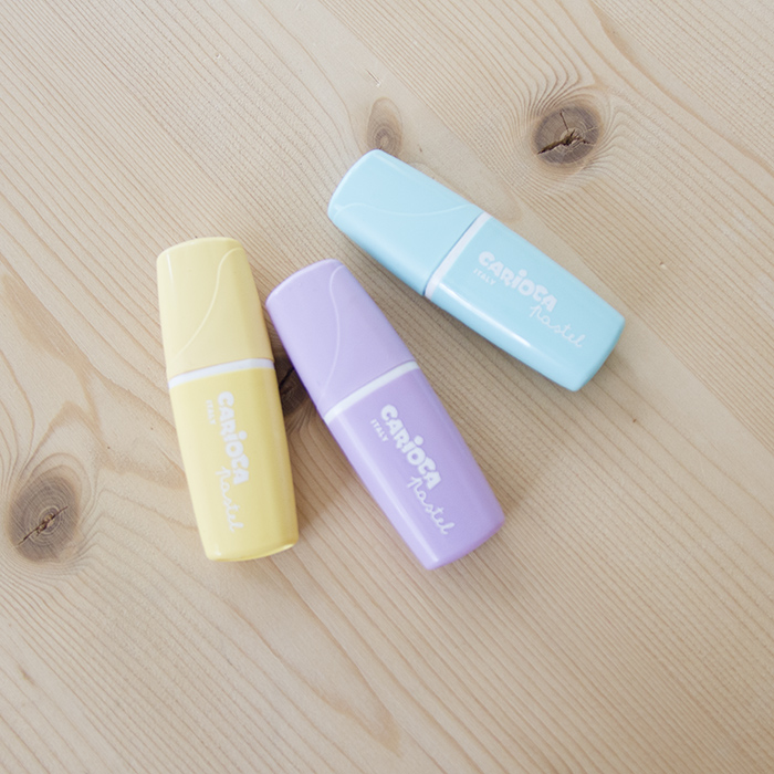 Sublinhadores de cores pastel. Tinta à base de água. Lavável.