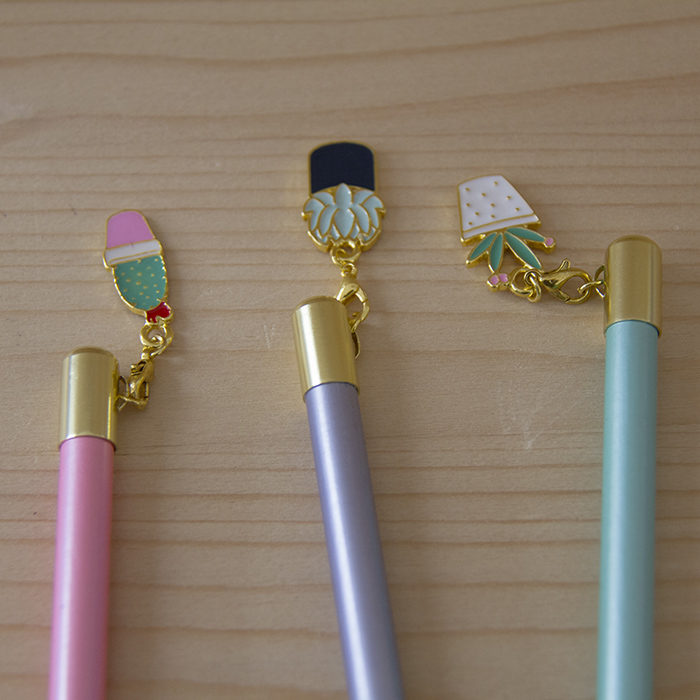 Lápis com pormenores dourados e pendente de cacto.