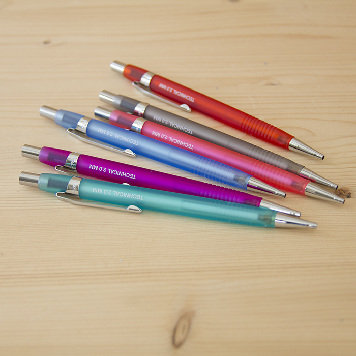 Lapiseira com corpo fosco, corpo triangular ergonómico e com textura suave.