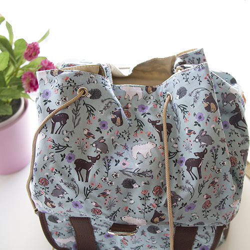 Mochila em tecido com pormenores em napa, linda para usar com o computador, no dia a dia, ou mesmo levar para a praia, fim de semana!
