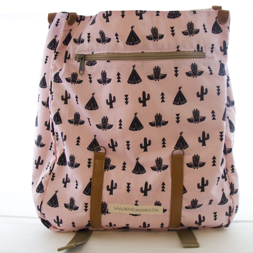 Mochila em tecido com detalhes em napa, linda para usar com o computador, no dia a dia, ou mesmo levar para a praia ou para passar um fim de semana fora!