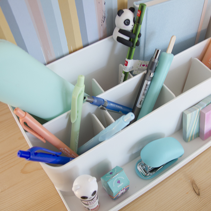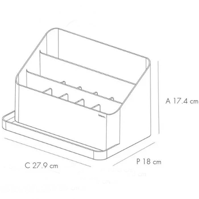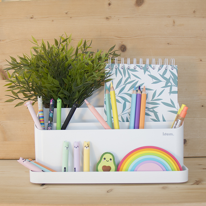 Organizador para ter em cima da mesa e arrumar facilmente vários tipos de objectos: material de escritório, maquiagem, cremes, pequenos artigos-