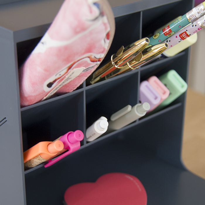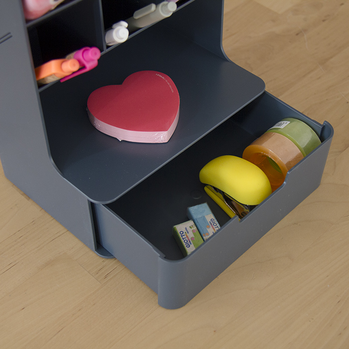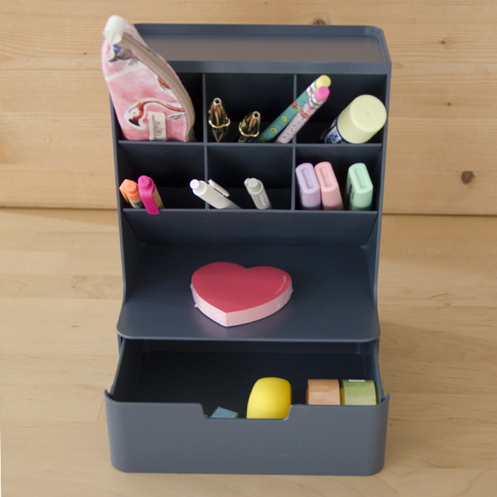 Organizador com vários compartimentos para organizar e dividir diferentes artigos.