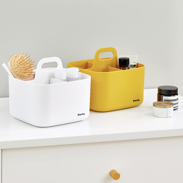Organizador compacto e portátil para organizar pequenos objectos na cozinha, na secretária, na casa de banho com maquiagem.