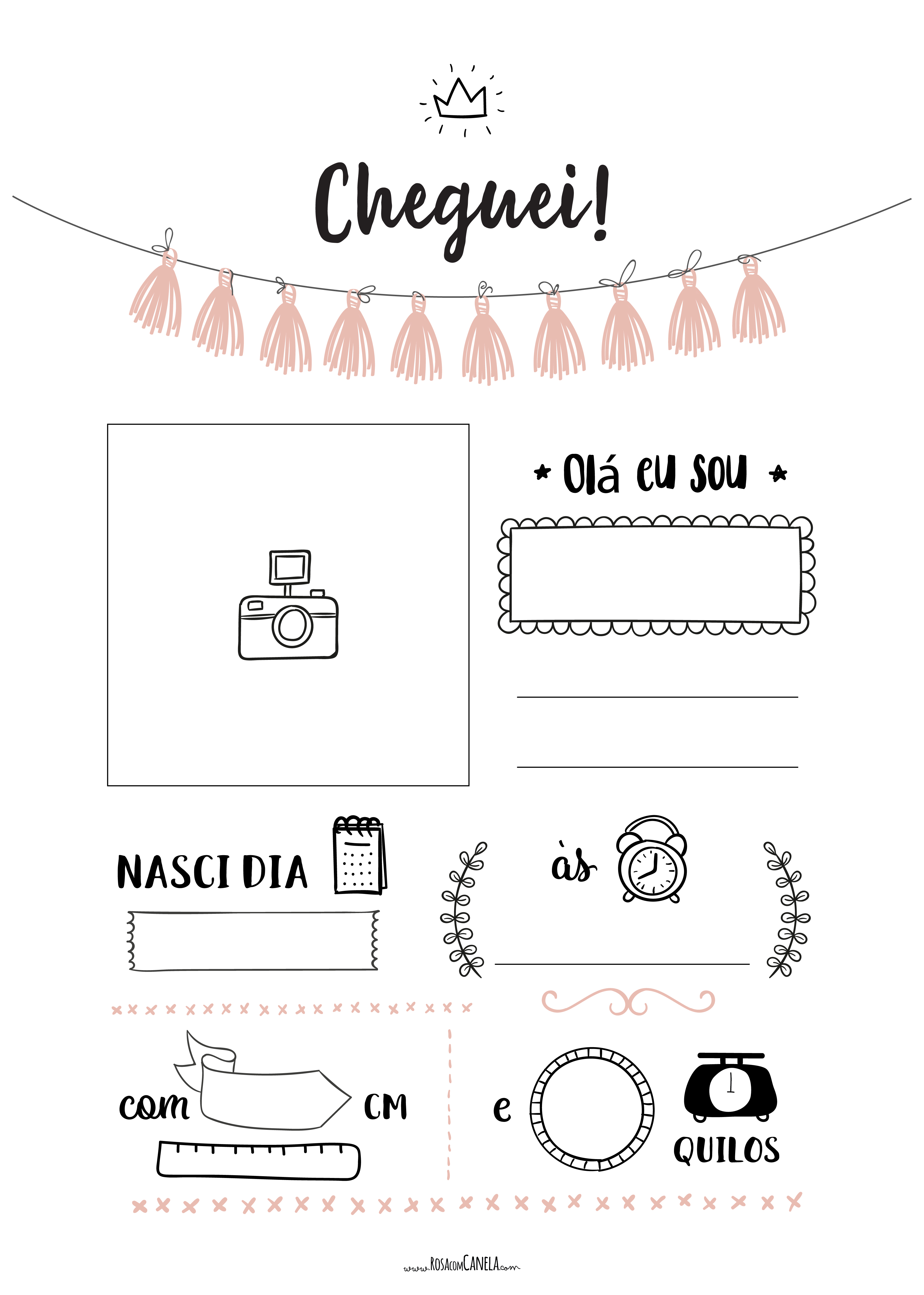 Póster de nascimento Cheguei! Pink