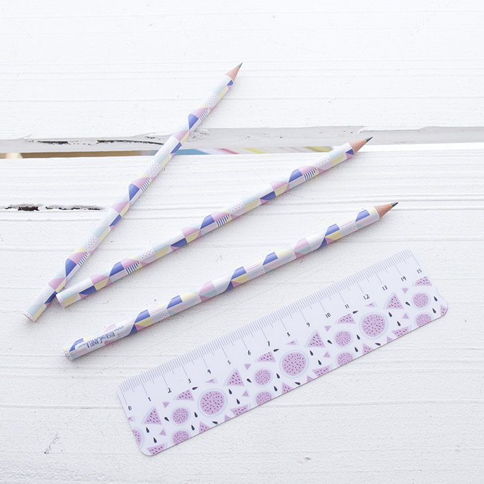 Régua 15 cm, em plástico polipropileno, com padrão impresso.