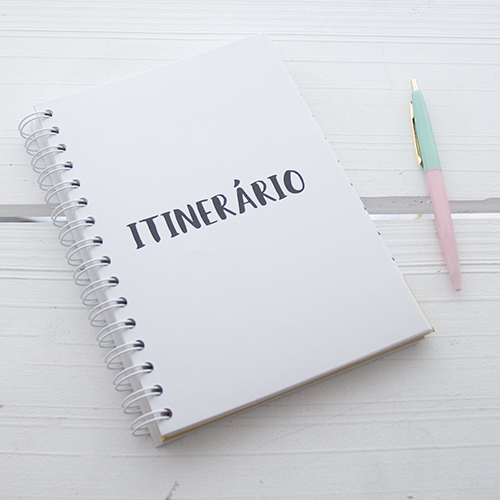 O Travel Book é um caderno A5, tem 13 separadores e entre eles, folhas lisas para poder preencher e colar.